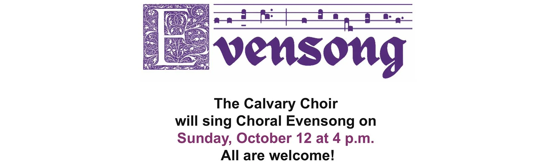 The Calvary Choir sings Choral Evensong on Sunday, October 12 at 4 p.m. – a new time, aimed at an easier fit into the afternoon and evening schedules of those wanting to attend, or to sing. The music includes responses by Sarah MacDonald, a contemporary Canadian organist and composer based at Cambridge University, and Charles Villiers Stanford and Charles Wood, who successively occupied the Professorship of Music at that university in the Victorian and Edwardian eras. Please join us.